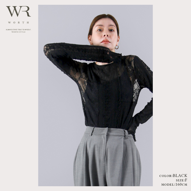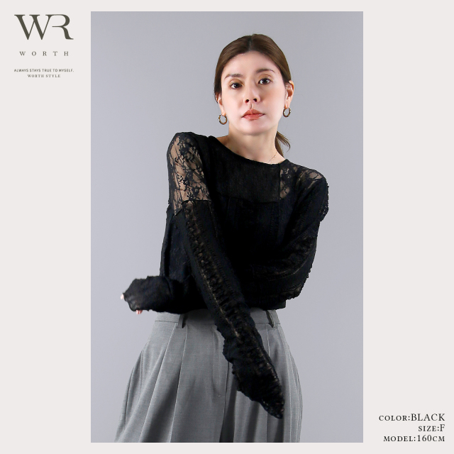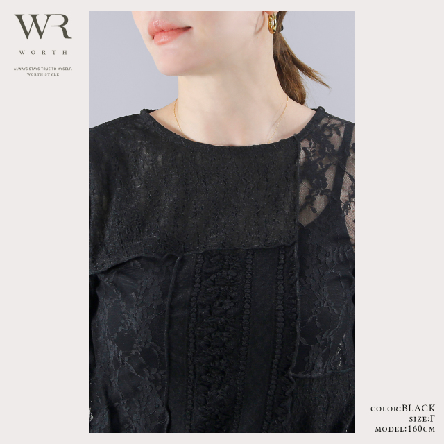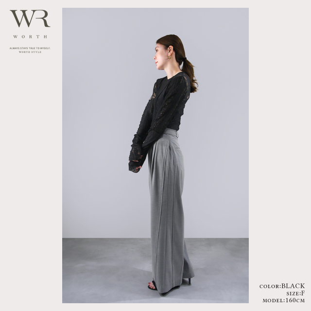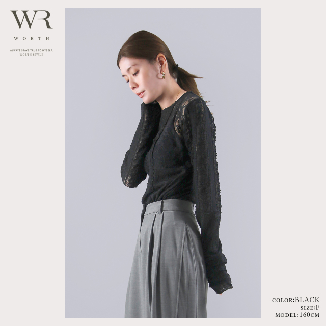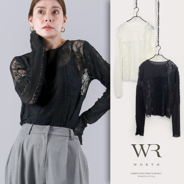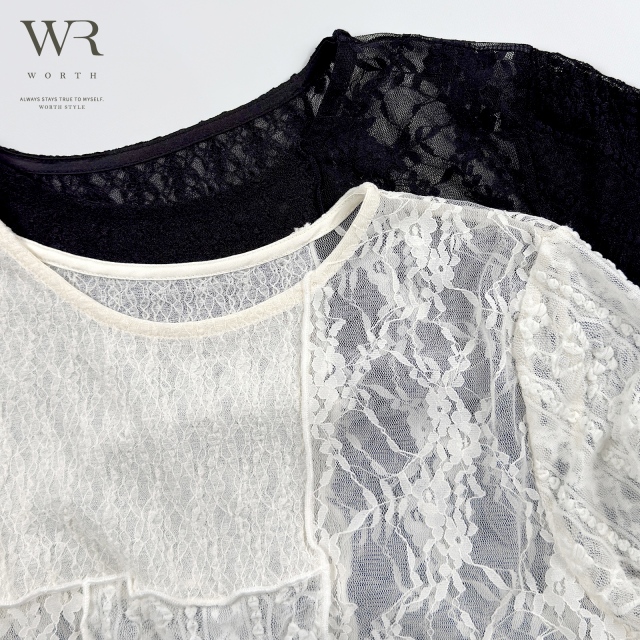 繊細なレースが大人のリラックスムードを高めてくれる一枚です。