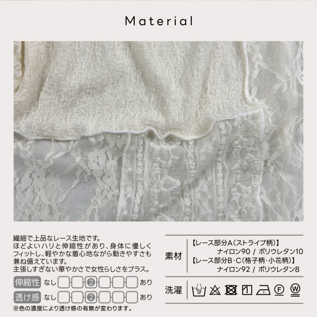 〈レース部分B 格子柄〉ナイロン92% / ポリウレタン8%