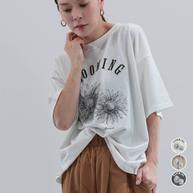 控えめなカラー使いで、フラワーデザインを大人向けのTシャツに仕上げました。