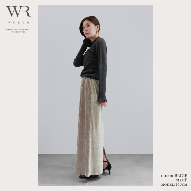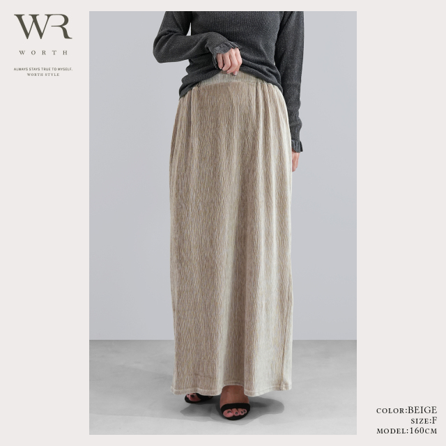 コーディネートに加えるだけで一気に秋らしくまとめてくれるスカートです。
