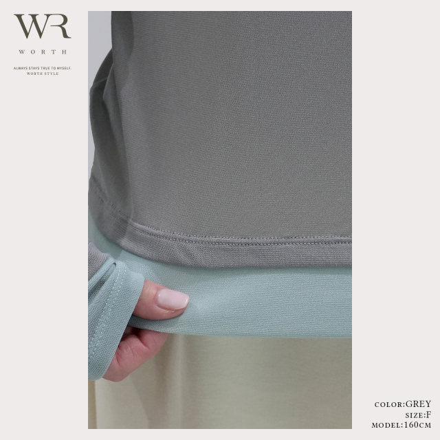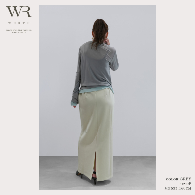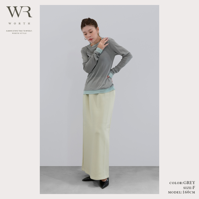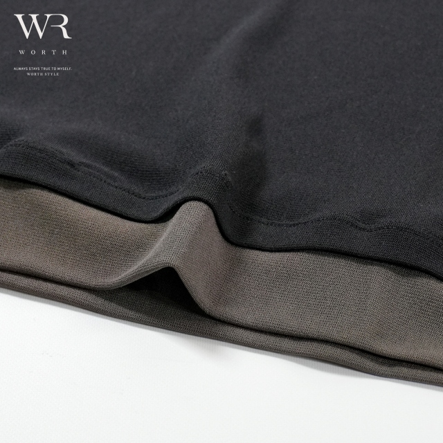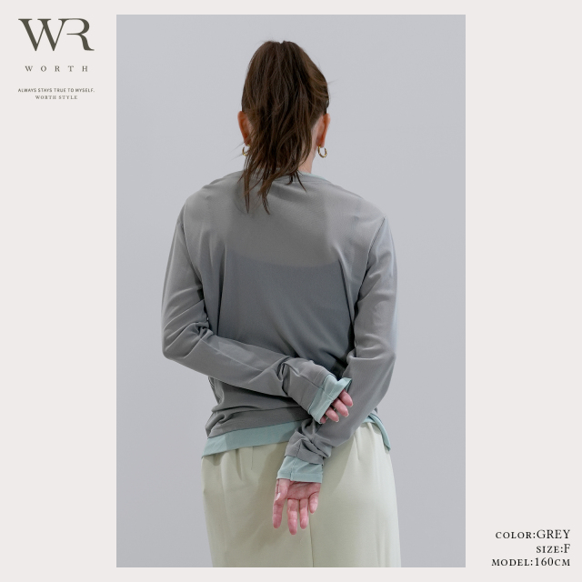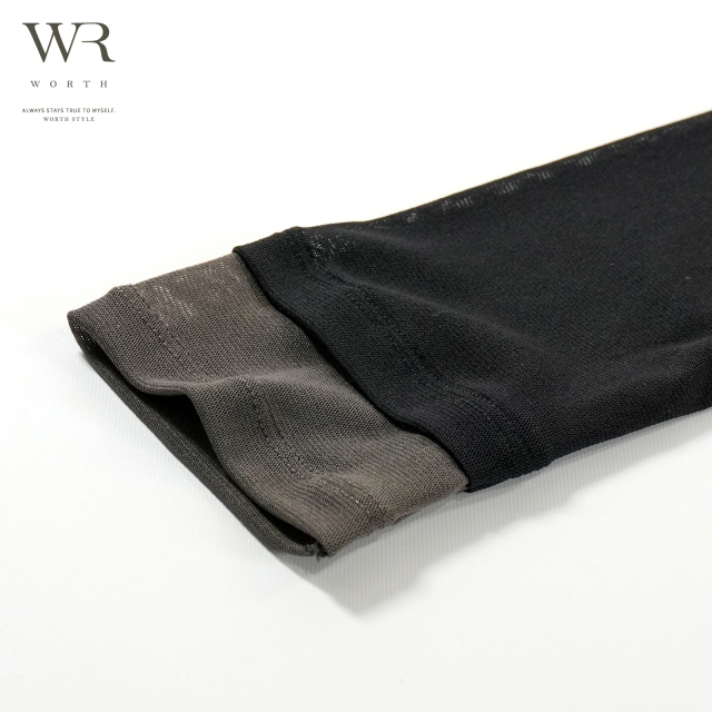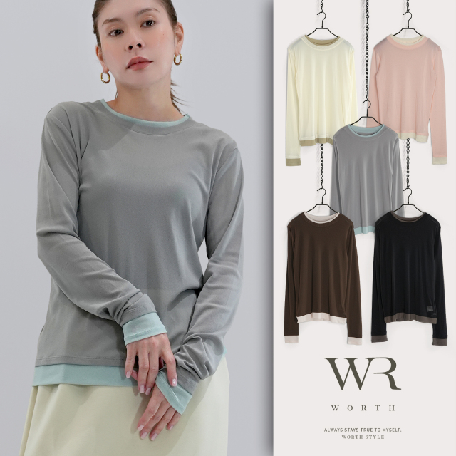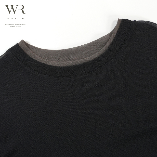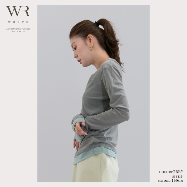 レイヤード風デザインで、重ね着のゴワつきと着膨れを解消。一枚の軽さで、二枚の洒落感を演出します。