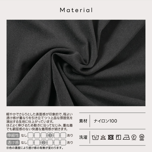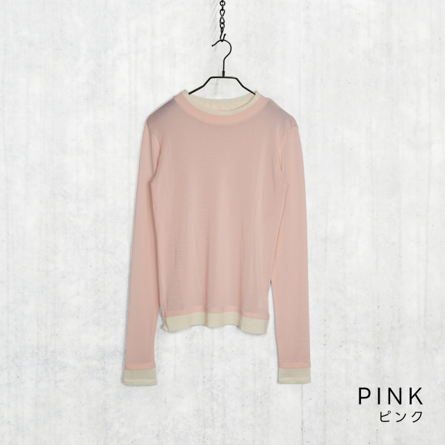 配色デザインで、膨張しがちなシアー素材をキリッと引き締める。さりげない配色使いで、おしゃれ度とメリハリ感をプラスします。