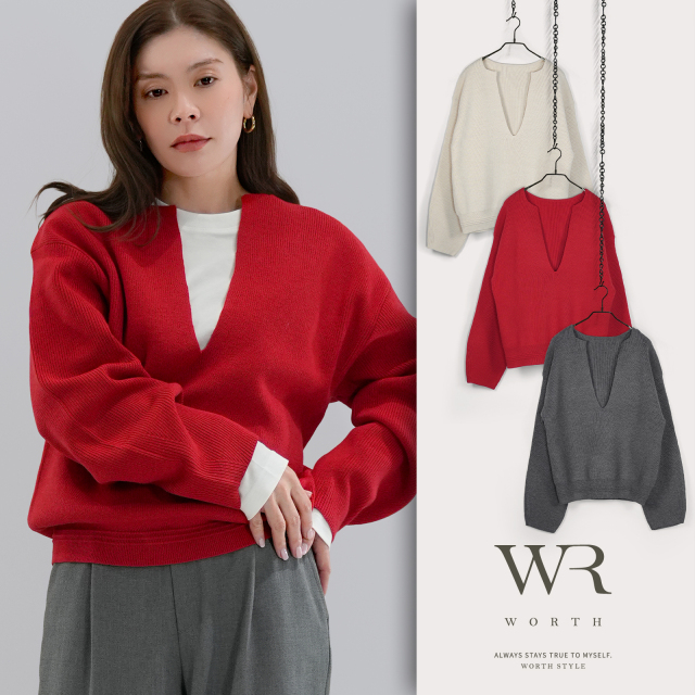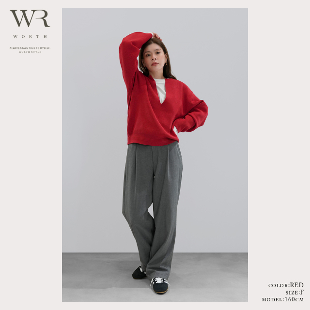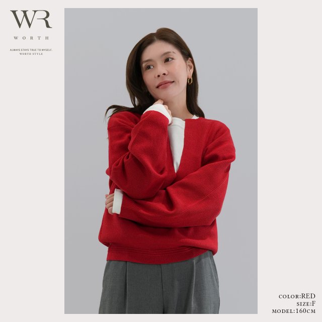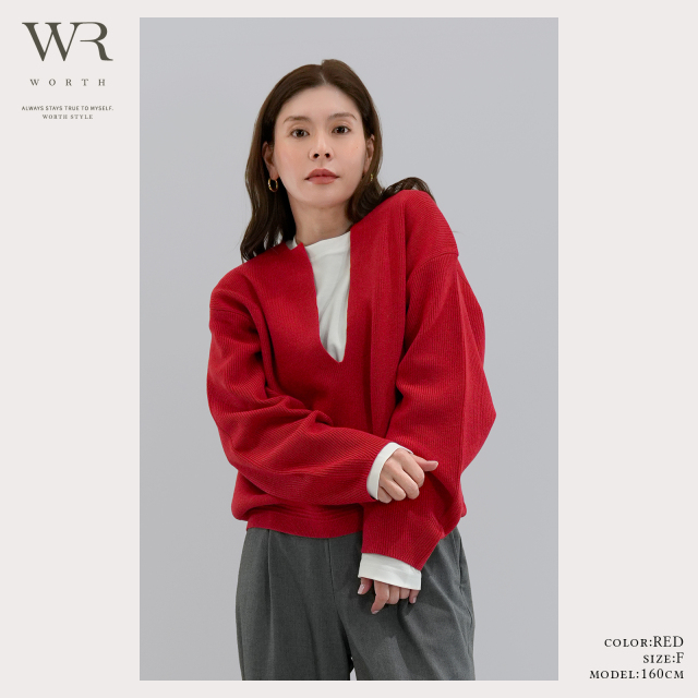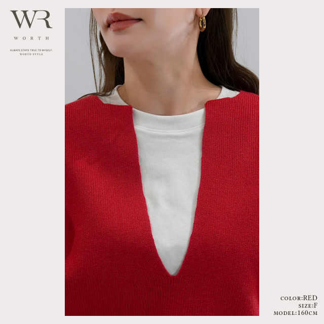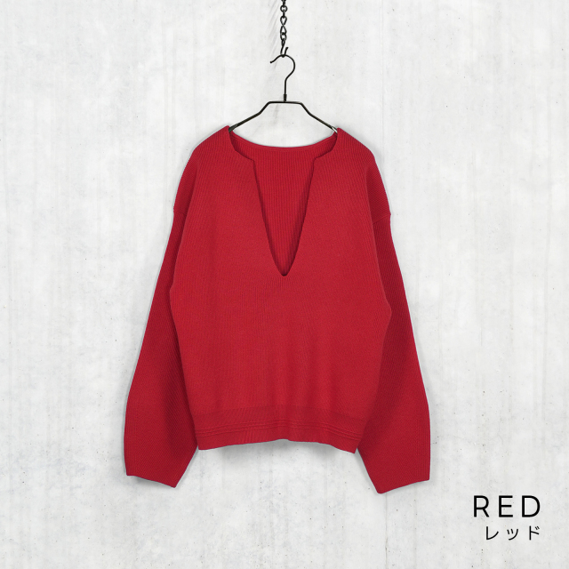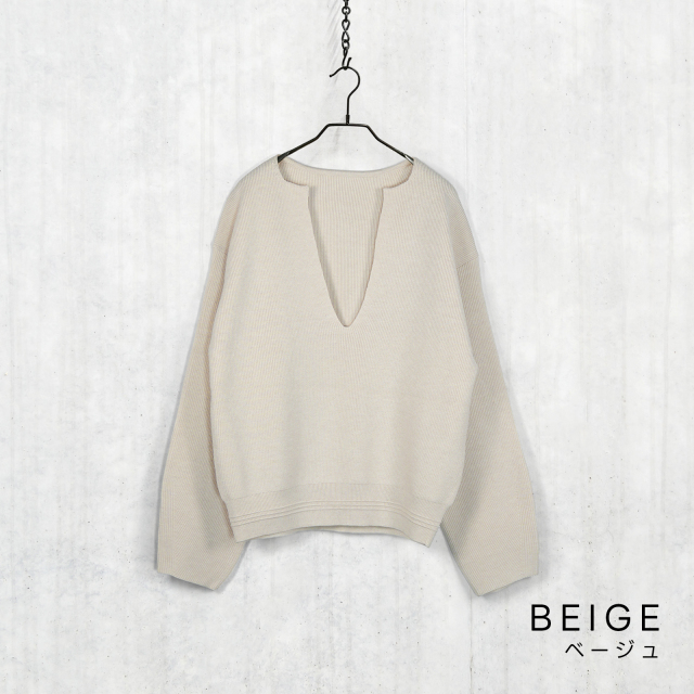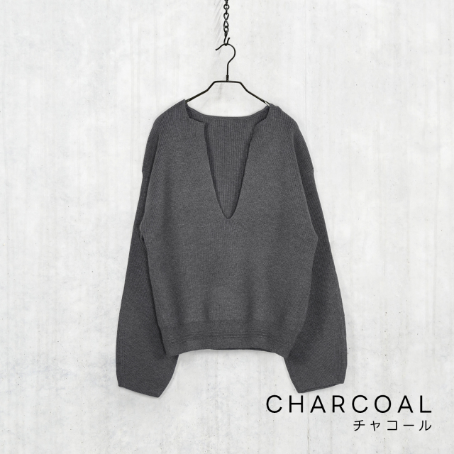 インナーと重ねてももたつかない絶妙なVネックで、幅広いレイヤードスタイルをお楽しみいただけます。